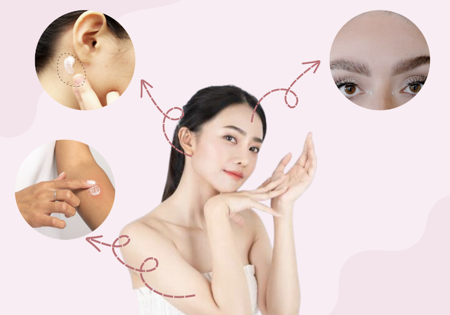 Sebelum memulai skin patch test, pastikan sudah memilih area kulit yang akan kamu test. Bagian yang ideal untuk skin patch test yaitu bagian kulit dahi, kulit bagian leher belakang telinga, dan lekukan siku.