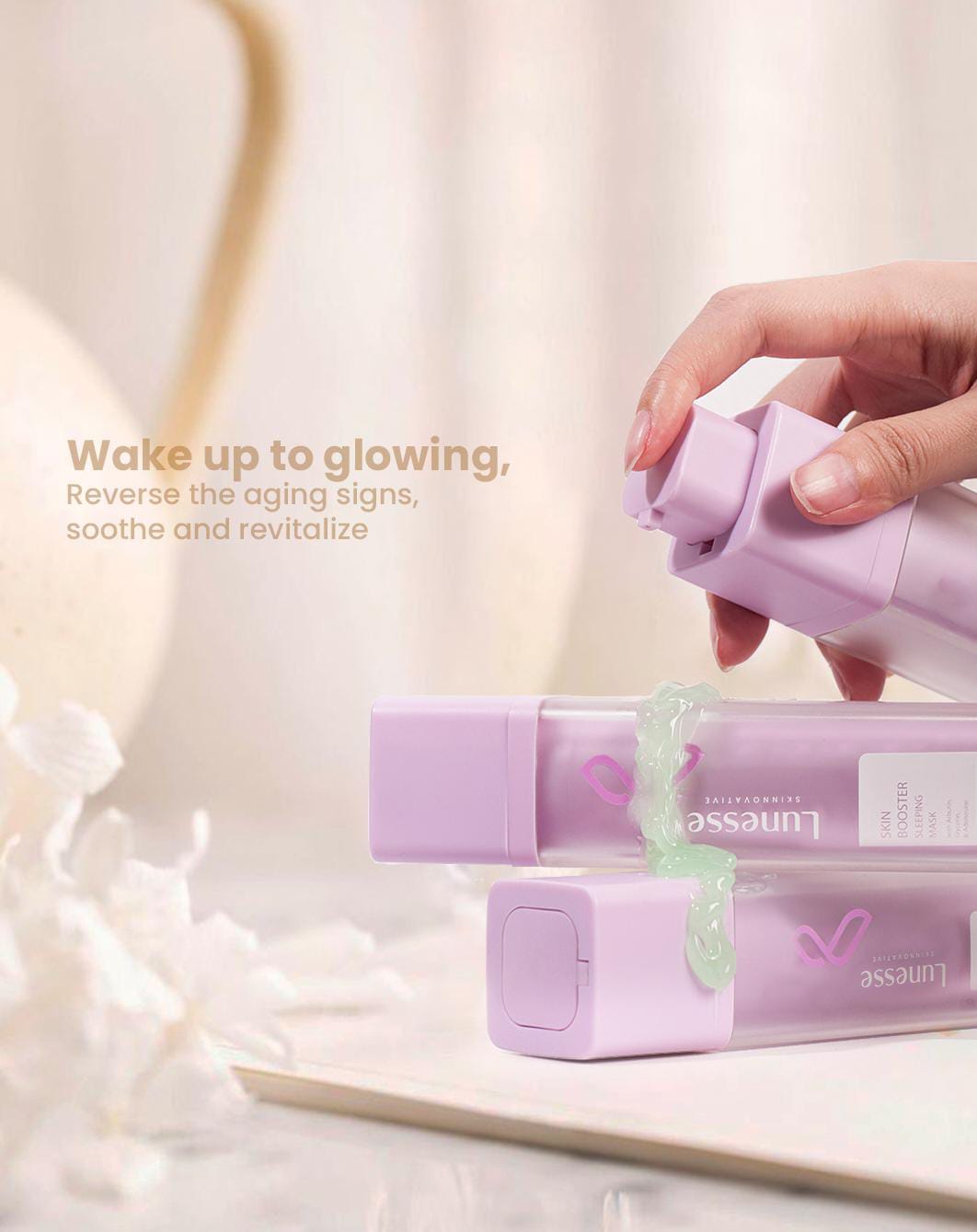 Lunesse Skin Booster Sleeping Mask, masker wajah overnight tanpa bilas yang sangat mudah dan praktis digunakan, dengan kandungan Adenosine untuk mengembalikan elastisitas kulit serta mengurangi garis-garis halus akibat penuaan dengan cara menstimulasi produksi kolagen pada kulit. Serta Alpha Arbutin & Niacinamide untuk membantu mencerahkan warna kulit tidak merata, mencegah timbulnya dark spots akibat penuaan maupun bekas jerawat.
