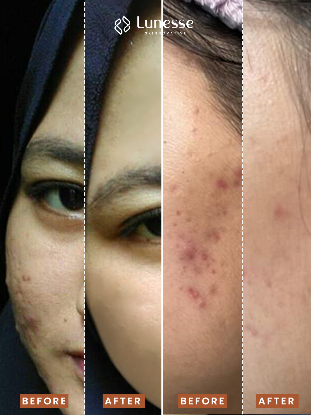 Untuk jerawat yang aktif dan meradang, gunakan juga Lunesse Acne Spot Gel, dengan kandungan benzoyl peroxide 5% dan centella asiatica. Ini bekerja langsung pada area berjerawat dan membantu mengeringkan jerawat lebih cepat tanpa meninggalkan bekas.