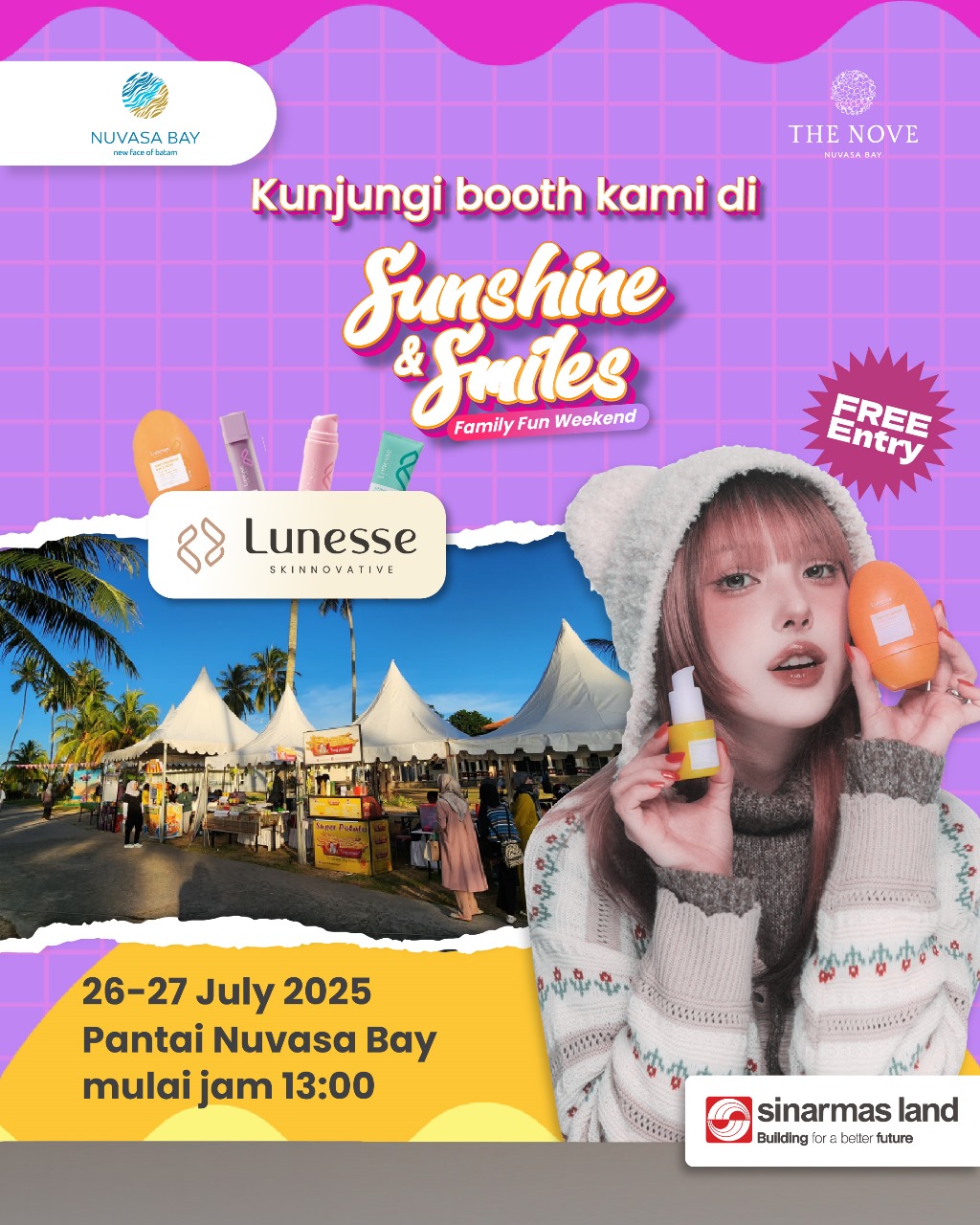 Acara Sunshine & Smiles: Family Fun Weekend yang digelar pada tanggal 26–27 Juli 2025 di Pantai Nuvasa Bay, Batam telah berlangsung dengan sukses besar! Cuaca cerah, angin pantai yang menyegarkan, dan antusiasme pengunjung menciptakan suasana yang hangat dan penuh semangat — dan kami dari Lunesse merasa sangat bangga bisa menjadi bagian dari momen berharga ini.