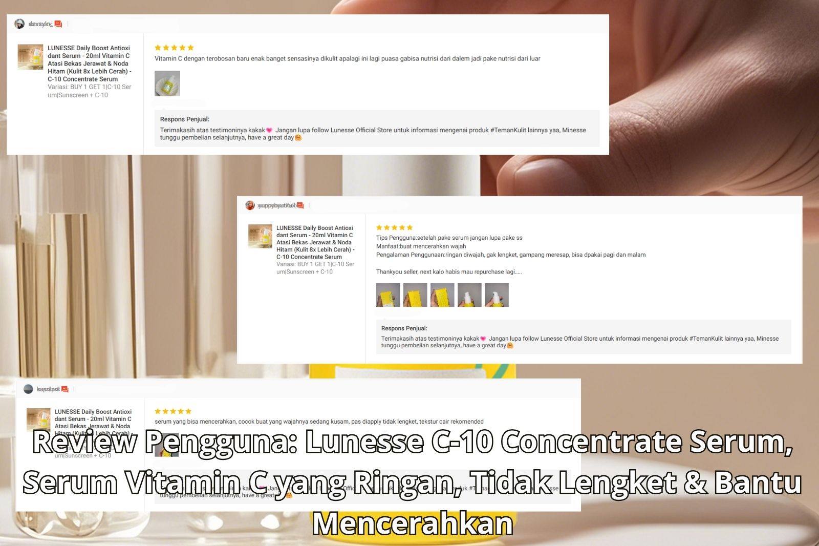 Review Pengguna: Lunesse C-10 Concentrate Serum, Serum Vitamin C yang Ringan, Tidak Lengket & Bantu Mencerahkan