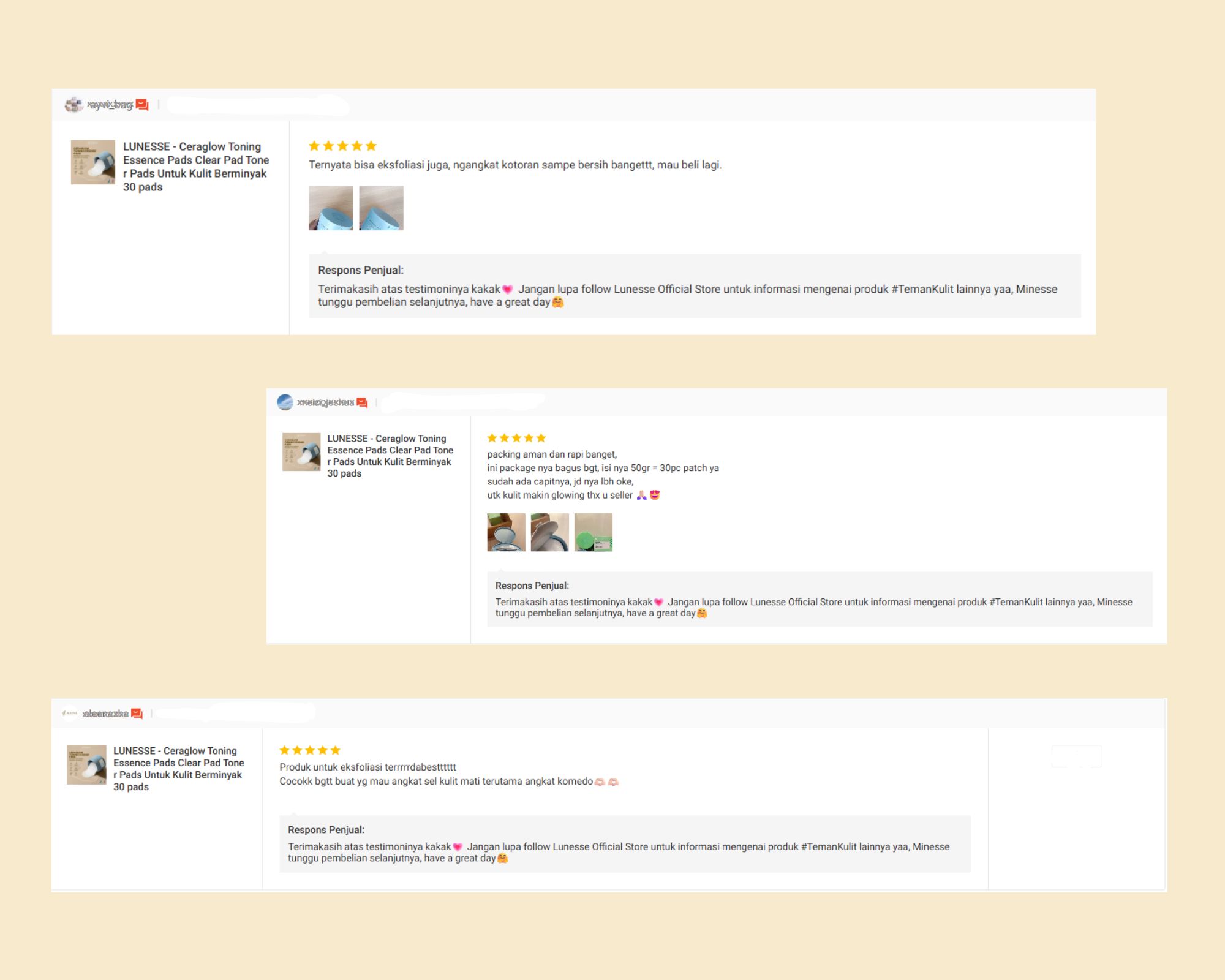 Dari ribuan perjalanan kulit, lahirlah cerita-cerita nyata para pengguna Lunesse Cera Glow Toning Essence Pads.