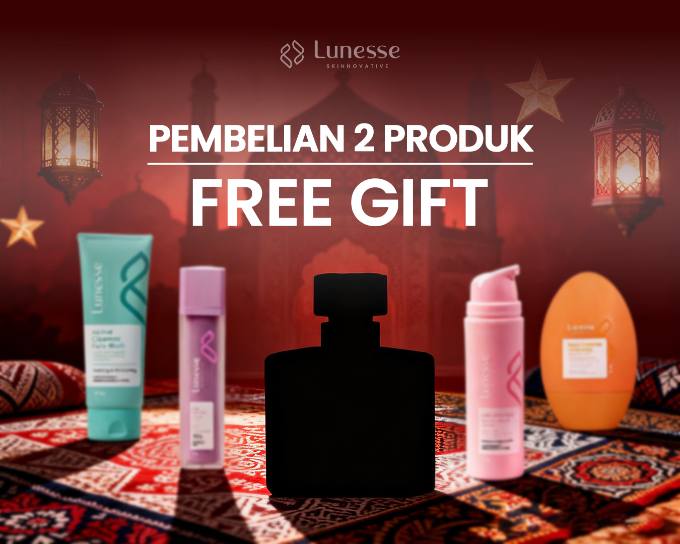 Dalam promo ini, kamu bisa mendapatkan hadiah menarik hanya dengan langkah yang sangat mudah. Cukup beli 2 produk Lunesse apa saja, dan kamu berhak mendapatkan GRATIS parfume sebagai hadiah spesial. Promo ini menjadi kesempatan sempurna untuk restock skincare favorit sekaligus mencoba produk baru dari Lunesse.