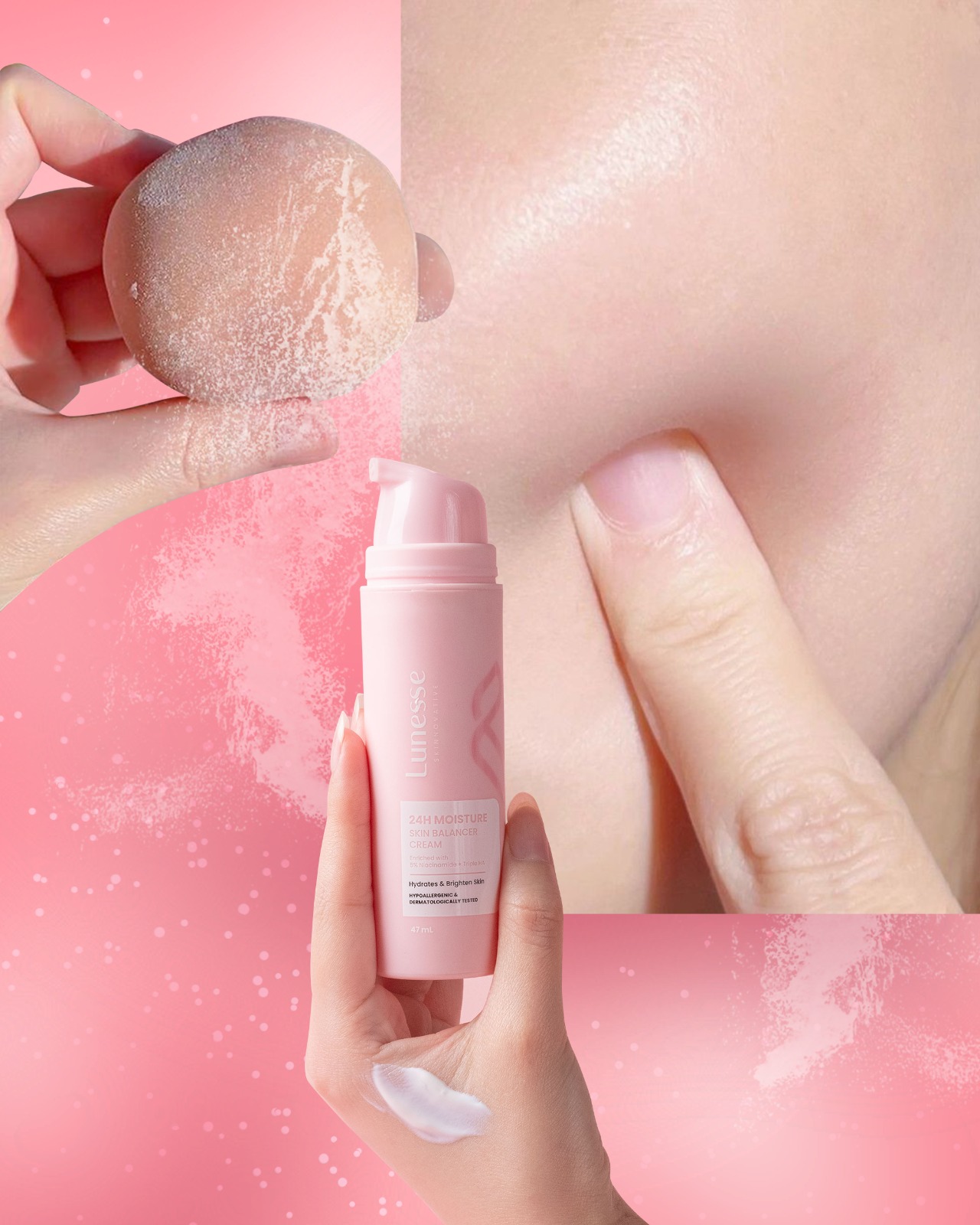 Pilih pelembap yang mengandung bahan-bahan yang dapat mengunci kelembapan, seperti ceramide, squalane, atau shea butter. Pelembap dengan tekstur krim atau balm biasanya lebih efektif untuk kulit yang sangat kering, seperti 24H Moisture Skin Balancer Cream.
