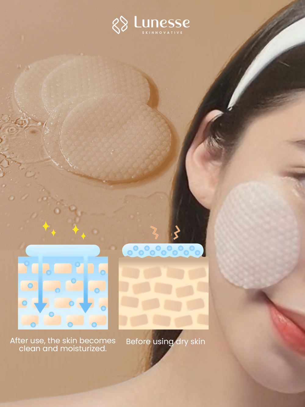 Lunesse Cera Glow Toning Essence Pads, Diformulasikan dengan PHA dan ceramide, pad eksfoliasi ini lembut di kulit namun efektif membersihkan pori-pori, mencerahkan kulit kusam, dan membuat permukaan kulit terasa lebih halus sejak pemakaian pertama. Gunakan 1–2 kali seminggu, terutama di malam hari, untuk hasil optimal.
