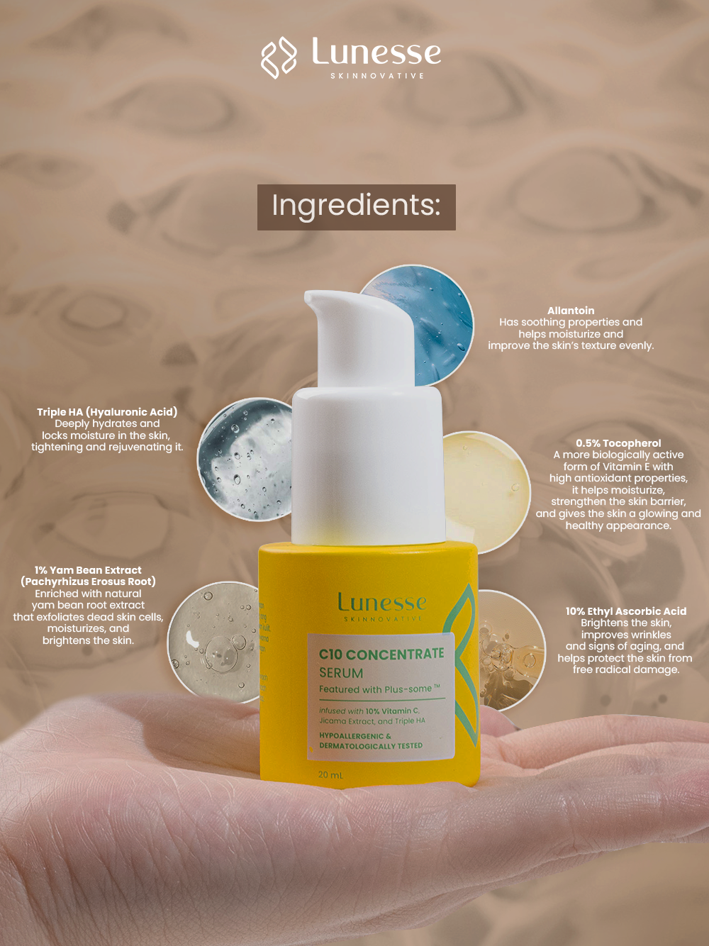 Mencerahkan kulit itu proses — bukan instan. Tapi dengan perawatan yang konsisten, produk berkualitas seperti Lunesse C-10 Concentrate Serum, serta gaya hidup yang mendukung, kulit cerah dan merata bukan lagi mimpi.