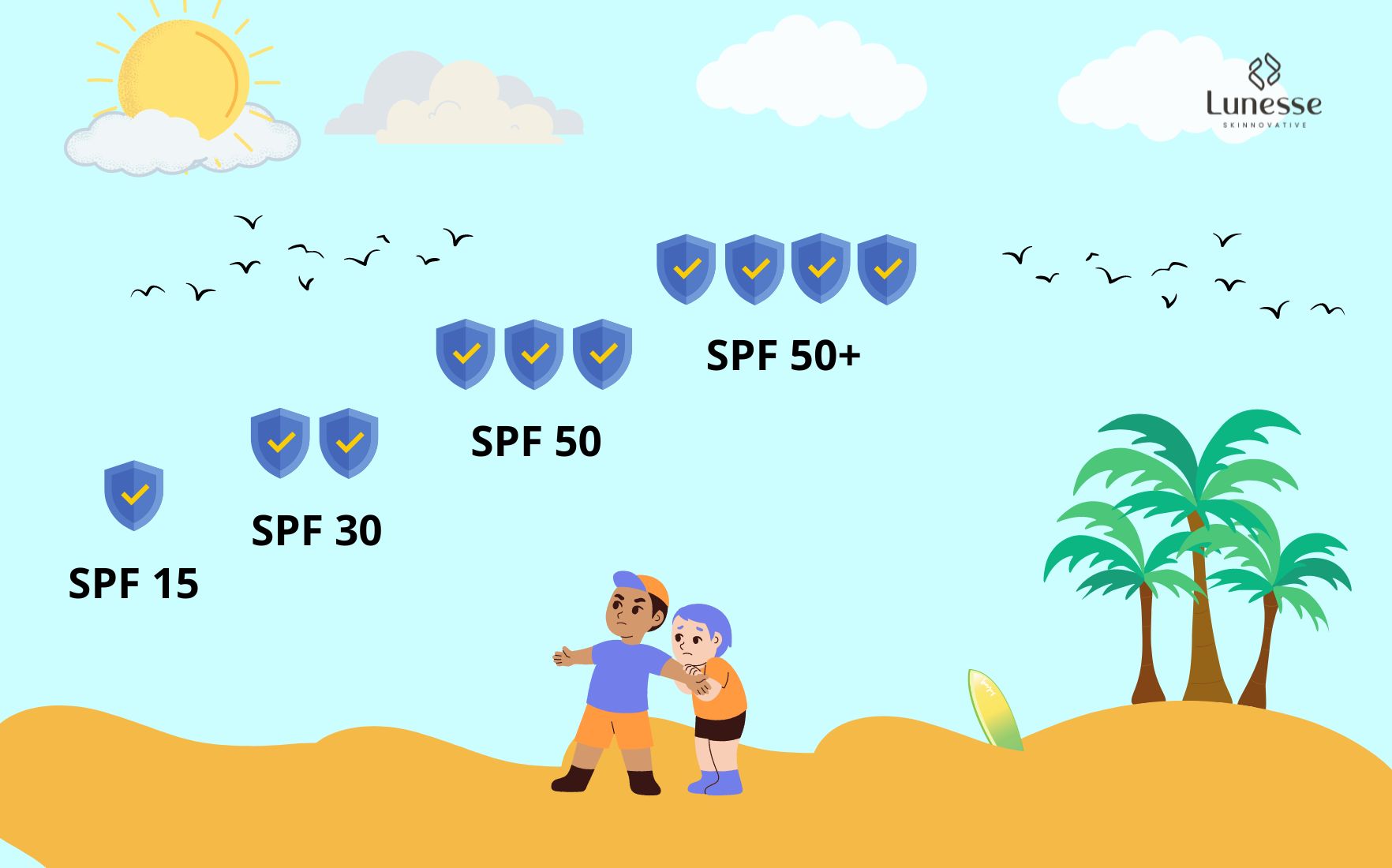 Berikut adalah ringkasan perbedaan antara angka SPF yang berbeda: