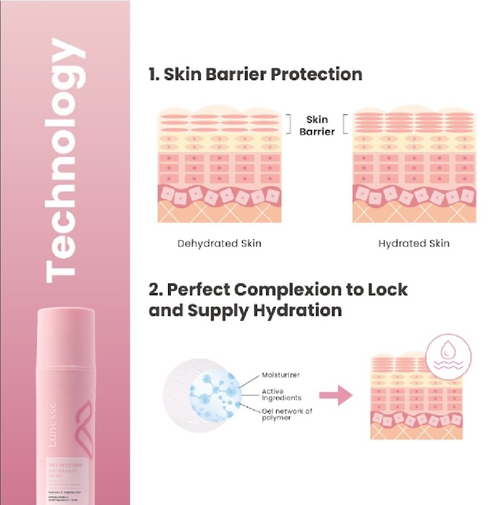 • Instant Tone Up and Brightening Effect: Ini bukan sekedar pelembap biasa; Lunesse 24H Skin Balancer Cream juga menyediakan efek instan mencerahkan kulit dan memberi tone up effect yang membuat kulit tampak lebih cerah dan hidup, sekaligus memberikan perlindungan dari efek buruk sinar UV.